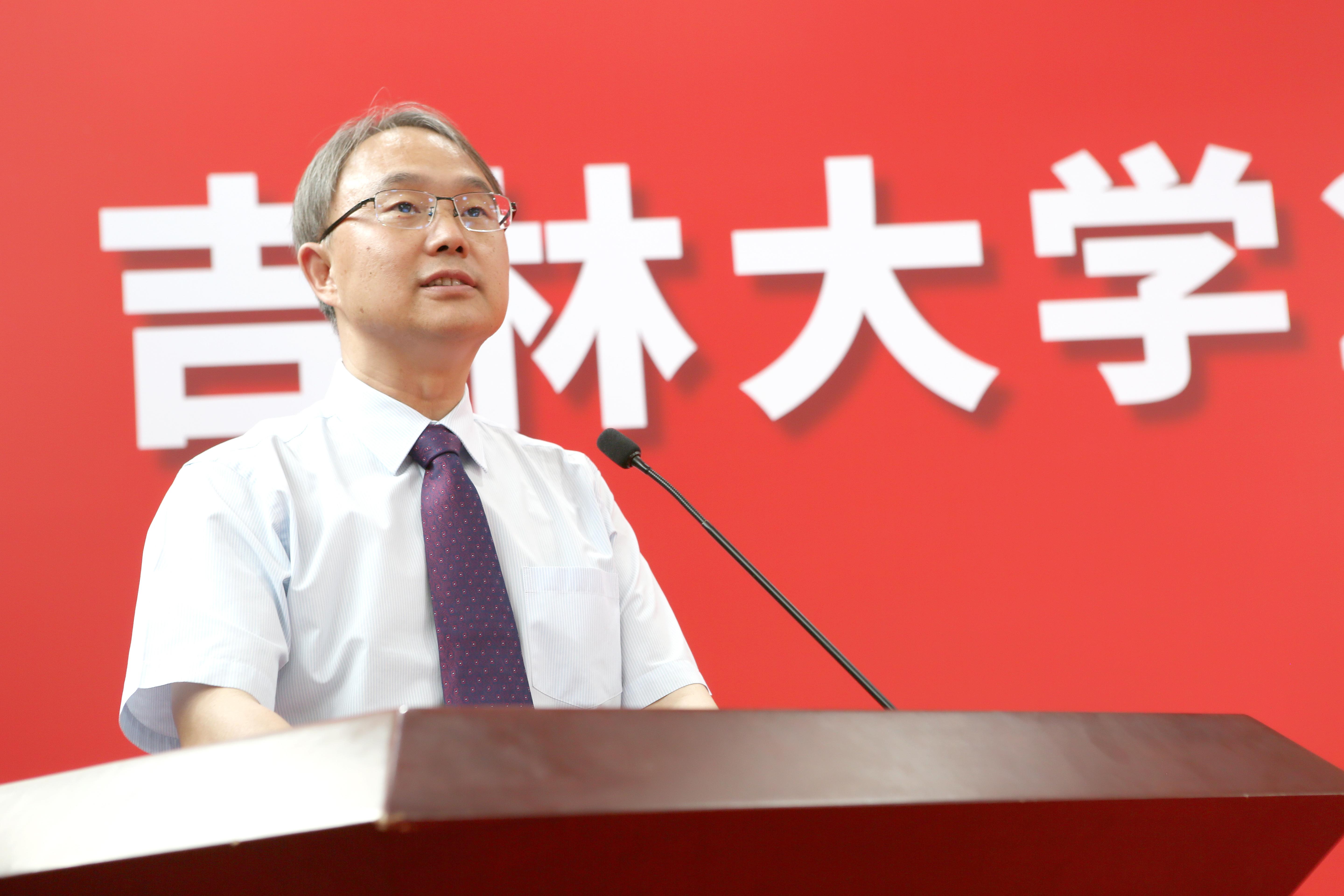 吉林大学唐敖庆领军教授,博士生导师刘云鹤教授代表学院全体教师发言。他勉励全体毕业生在实践中求得真学问、炼好真本领,以永不懈怠的实干状态,以一往无前的奋斗姿态,努力成为基础研究创新的“排头兵”、重大科技突破的“领头雁”,在砥砺奋进、筑梦远方的前行中,扛起更加有为的强国使命。