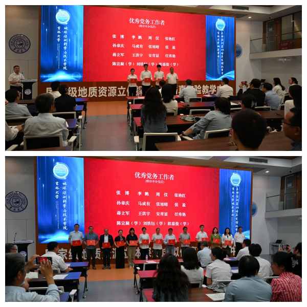 大会在雄壮的国歌声中拉开帷幕。与会师生党员面向党旗,重温入党誓词。院党委书记卜立平宣读《关于表彰地球探测科学与技术学院2025年“两优一先”的决定》,34名同志被授予“地探学院优秀共产党员”称号,15名同志被授予“地探学院优秀党务工作者”称号,5个党支部被授予“地探学院先进党支部”称号,与会领导分别为获奖人员颁奖。