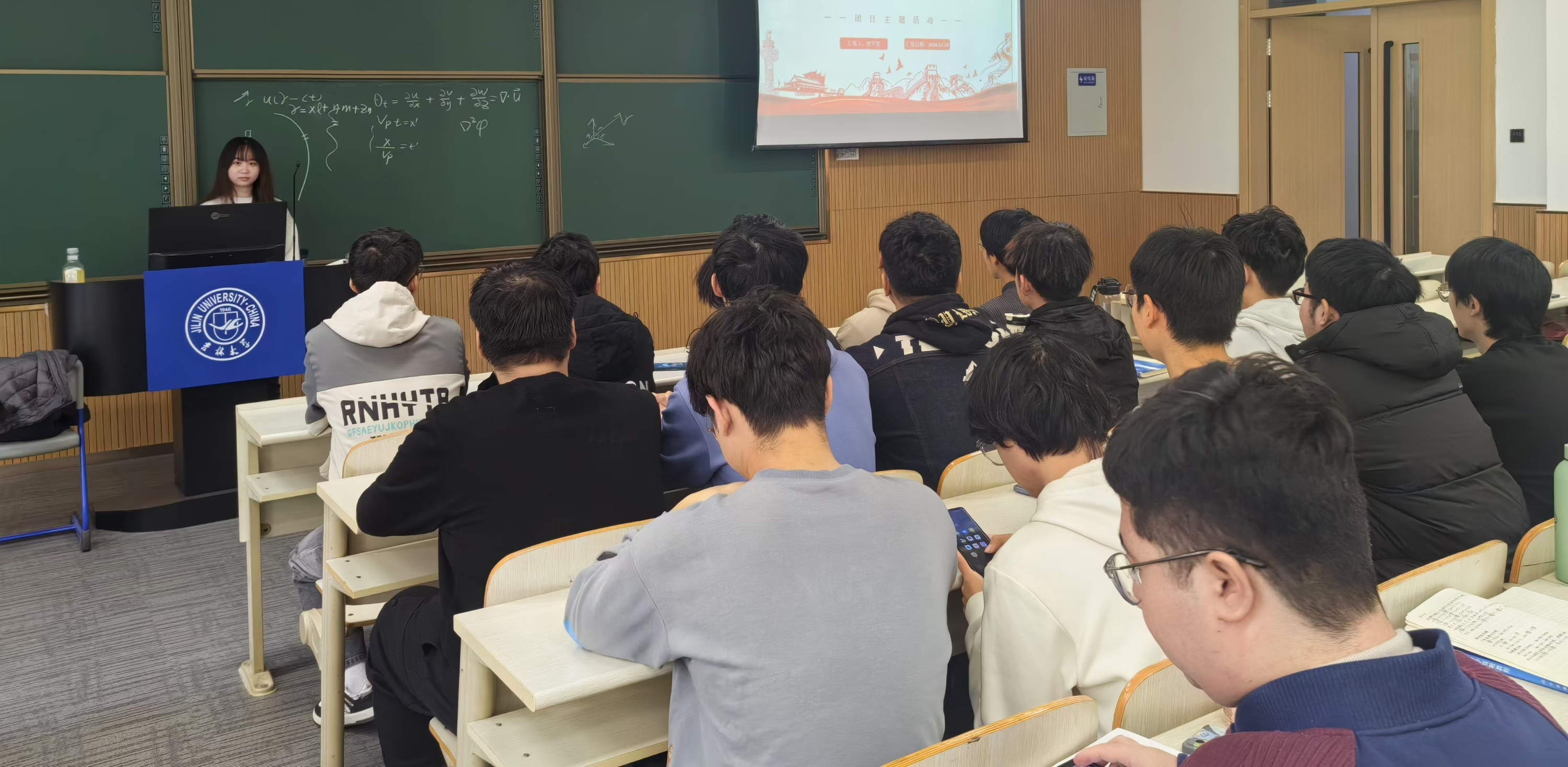 为了庆祝中华人民共和国成立75周年,引导广大青年学子坚定理想信念、勇担时代使命,地探学院2023级6班团支部于2024年12月6日开展了以“七十五年风雨兼程,我与祖国共成长”为主题的团日活动。23级7班团支部全体人员和辅导员王洪宇老师共同参加此次活动。23级6班团支部全体人员和辅导员王洪宇老师共同参加此次活动。此次活动旨在弘扬爱国主义精神,增强同学们的爱国情感,同时回顾国家发展历程,展望美好未来。
